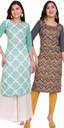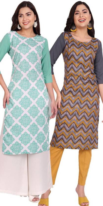 Pack of 2 Women Printed Crepe Straight Kurta (Multicolor)