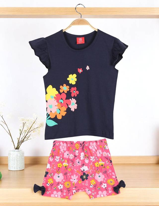 Shlok Samhita Presents a lovely co-ordinated combo of Top and Skirt-Pants that complement each other perfectly and are suitable for a casual day-out .The top is contoured to the body shape and had ruffled cape sleeves for the exquisite look.Skirt pants give the stylish skirt look,highlighted with bows on either sides and combined with the comfort of shorts thereby making it extremly stylish and functional.
