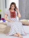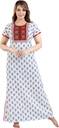 The nightgown appears to be made of a soft, breathable fabric, possibly cotton which is ideal for relaxing and sleeping. The design features a subtle pattern and delicate embroidery, adding a touch of elegance. The overall impression is one of comfort and style, perfect for a restful night's sleep.