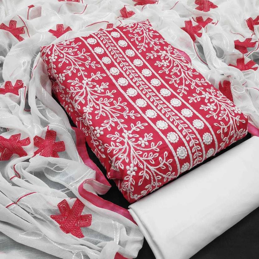 Unstitched Cotton Blend Salwar Suit Material Embroidered