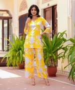 Featuring vibrant printed patterns on both the top and bottom pieces, this co-ords set exudes charm and style. The coordinated prints add a cohesive and fashionable look to your outfit, suitable for various occasions where you want to stand out effortlessly. Whether you're attending a casual daytime event or a lively evening gathering, the intricate prints ensure you make a statement with your attire.