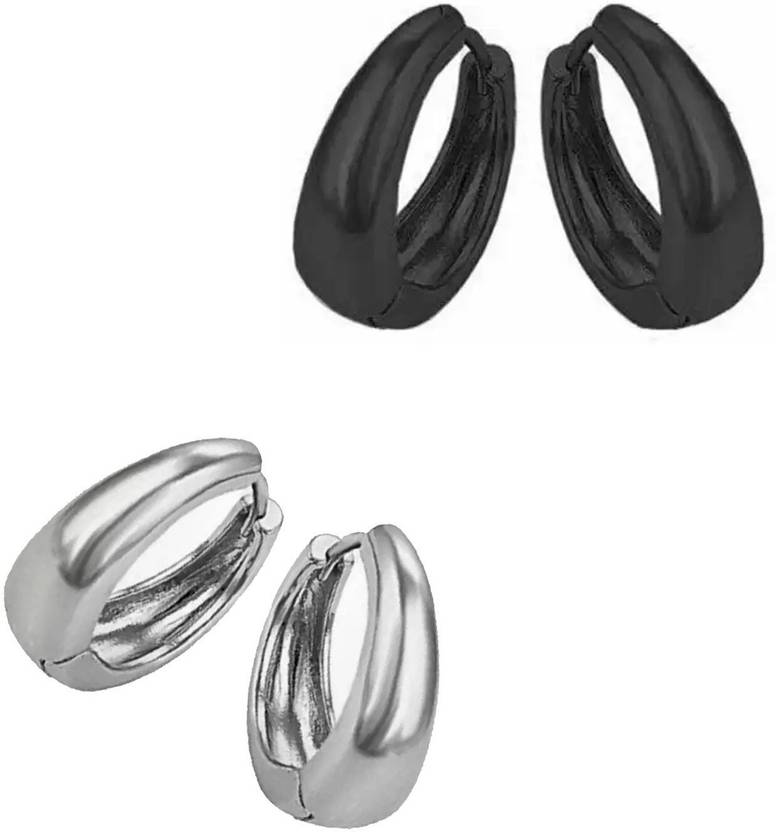 2 Pair Black Silver studs Earring Bali Hoop ComboEarring-19