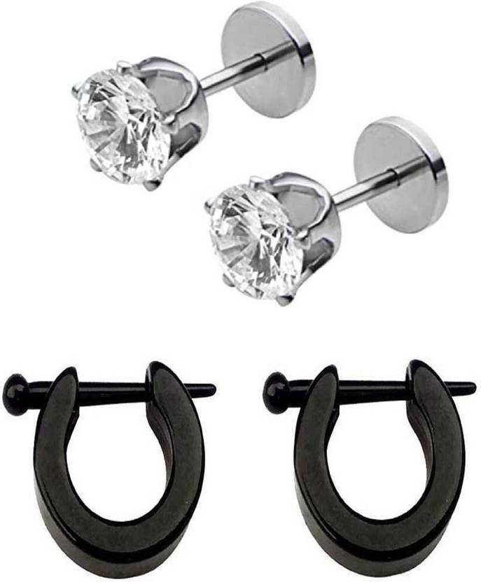 2 Pair Combo Stainless Steel Earrings for Men and Boys FLIComSTEa-72