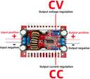 Adjust "CC-ADJ" potentiometer counterclockwise about 30 circles to minimize the output current before connecting to load(clockwise to increase current, counterclockwise to reduce current). Then adjust "CC-ADJ" clockwise to the current value you need. If you use the module for battery charging, connect to output after battery is fully discharged. Because if the more energy is left in battery, the less charging current will be.