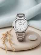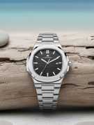 With the rounded octagonal shape of its bezel, the ingenious porthole construction of its case, and its horizontally embossed dial, the Nautilus has epitomized the elegant sports watch. Forty years later, it comprises a splendid collection of models for men. In steel chain, black dial, blue dial, white dial & green dial they accompany the most active lifestyles with incomparable class.