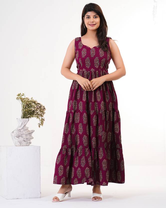 Shodharinee Floral Print Pure Cotton Stitched Anarkali Gown (Maroon)