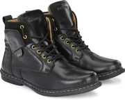 Leather Black Tough Lace Ups High Ankle Length Mens Casual Boots