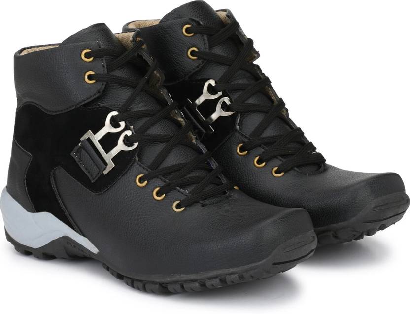 Leatherette Black Edition Lace-Up High Ankle Length Casual Long Boots For Men