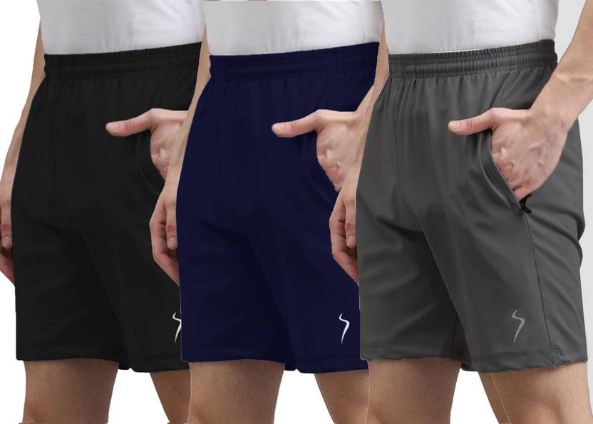 SHOELAKE Solid Men Black, Blue, Grey Running Shorts