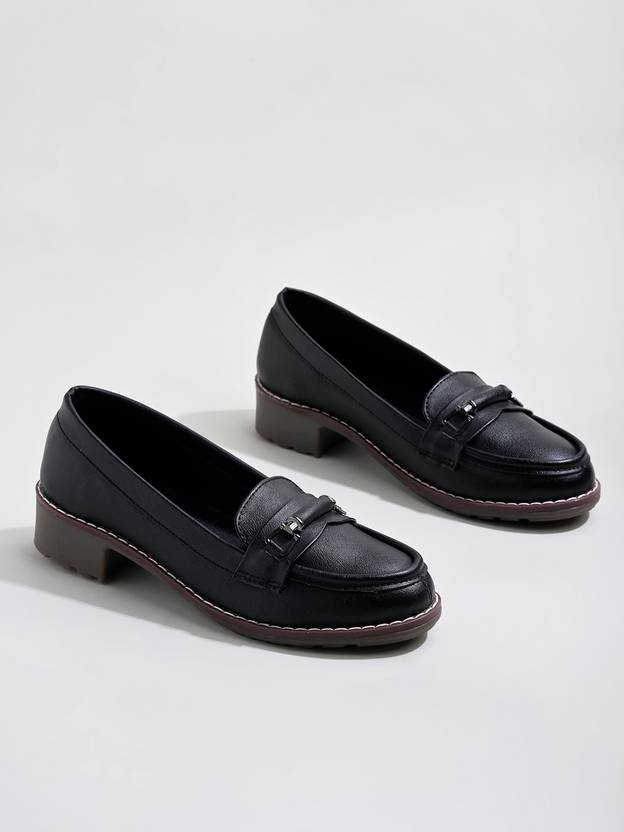 SHOETOPIA Girls Slip on Loafers (Black, 11 Years)