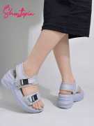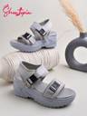 SHOETOPIA Girls Velcro Heels (Grey , 13-14 Years)