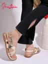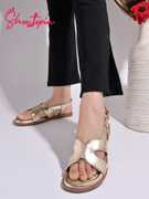 Adorned with cross-strap detailing and a solid pattern, these women’s flat sandals can exude an elegant appeal. And, the chic metallic embellishment can add a touch of glamour, elevating your overall ensemble. Whether you are strolling along the beach or attending a garden party, these sandals can help you make a statement with their refined design and aesthetic.