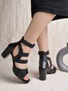 Boasting block heels and a stylish strappy design, these women's heels exude elegance and sophistication. The block heels offer stability and height, while the strappy detailing adds a touch of glamour to any ensemble. So, whether paired with a cocktail dress for a night out or dressed down with jeans for a more casual look, these heels can help you make a style statement easily.