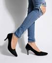 Transform your formal dressing with The Black suede pumps for women and girls. With medium kitten heels, this is the perfect pair for work and party. Style Tip- Style these detailed ballerinas with skirts, dresses. trousers or pants. For an after office party, pair these with a black peplum dress and statement earrings.
