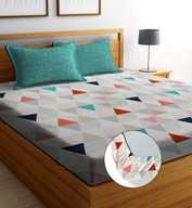 SHOMES Cotton Double, King Fitted (Elastic) 250 TC Floral Bedsheet (Pack of 1, Cream, Green)
