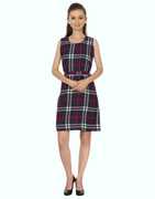 Shonisha; Make a sophisticated style statement with this western dress featuring a timeless plaid pattern. The sleeveless design offers comfort and versatility, while the fitted silhouette with a belted waist creates a flattering feminine shape. The knee-length cut and round neckline maintain a professional yet fashionable appearance, perfect for both office wear and social occasions. The dress showcases a classic windowpane check pattern that adds visual interest and structure to the overall design. Crafted with attention to detail, this dress includes practical features like a comfortable fit and versatile styling potential.
