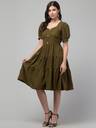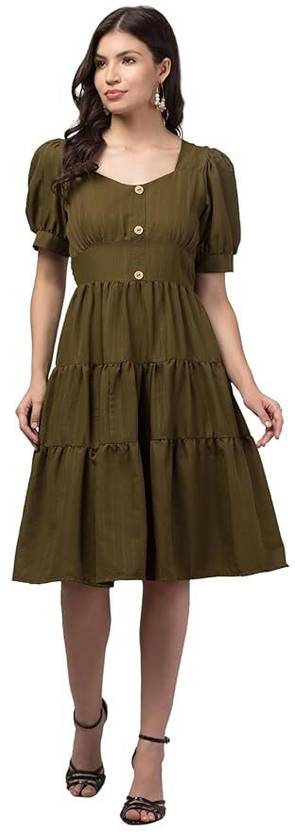 Shonisha Women Fit and Flare Green Knee Length Dress
