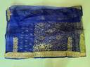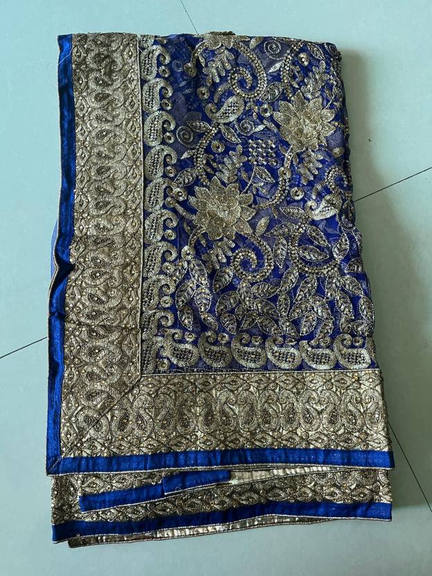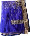 The saree is crafted from net fabric, giving it a sheer, lightweight, and airy look. Despite its light appearance, the net adds an elegant depth to the garment.The blue hue can range from a deep navy to a bright royal blue or even a rich turquoise, depending on the design. The color gives the saree a royal, timeless appeal.
