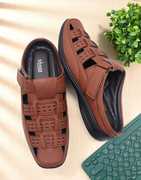 These Synthetic Leather Back Open Sandals for Men from the house of Shooz is an ideal choice for those seeking a versatile and fashionable footwear option. These men open half sandals boast a unique design that effortlessly blends classic and contemporary elements perfect for both formal and casual wear these men sandals provide the perfect blend of comfort, durability, and style.