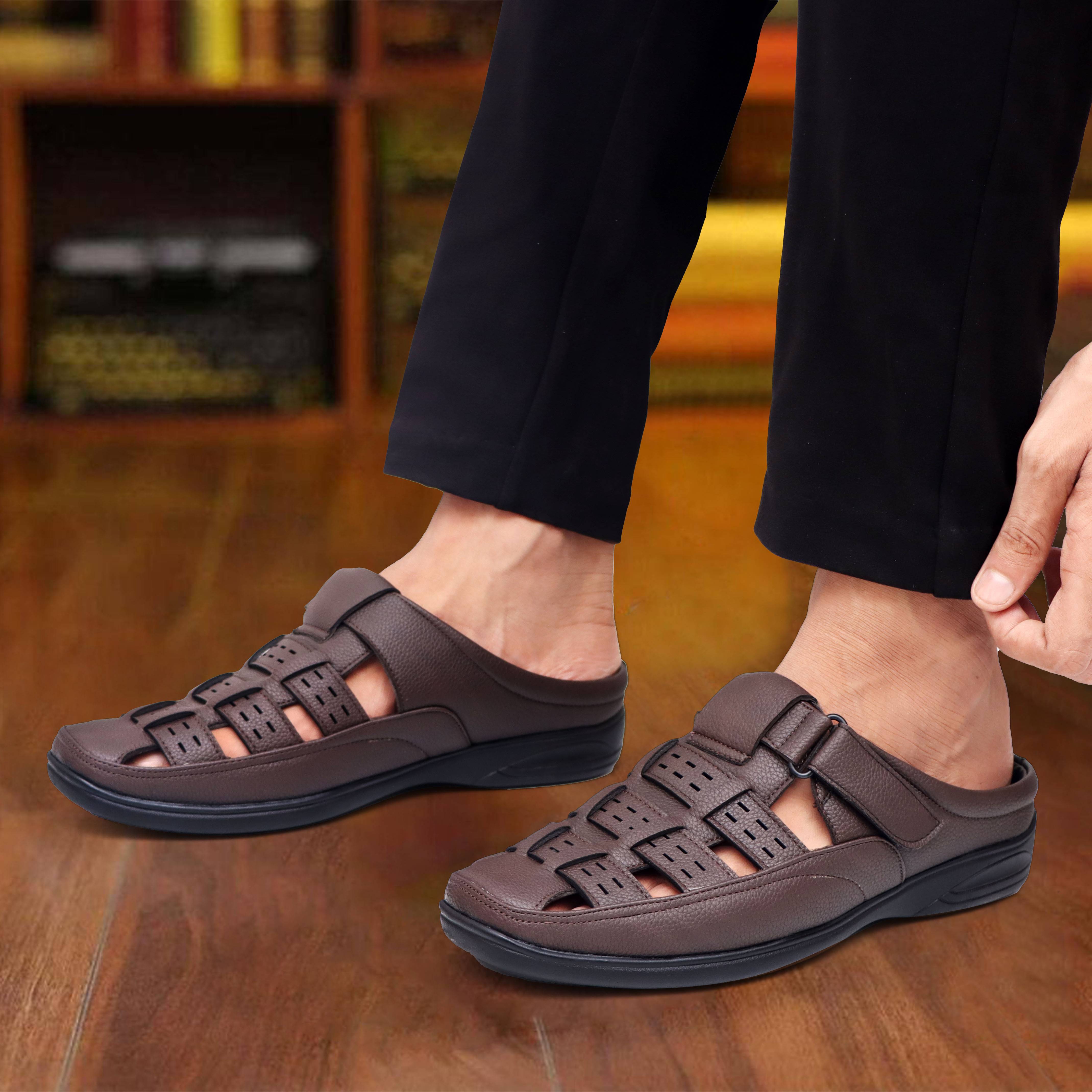 These Synthetic Leather Back Open Sandals for Men Latest features a contemporary and fashionable design that effortlessly combines classic and modern elements.