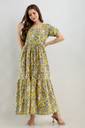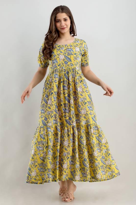 You're sure to love the style and comfort of this beautiful Shopaxis Jaipuri dress. It features flared hem, round neck, in trend block print, floral printed design, short fitted sleeves, pure cotton fabric and subtle yellow tone. This dress for girls women is perfect to fit in your casual wardrobe.