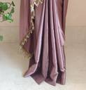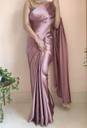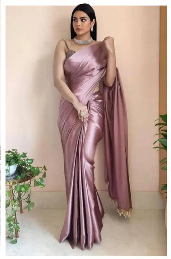 Sataz Solid/Plain Pre Draped Saree Satin Saree (Purple)
