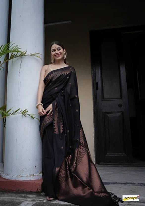 SHOPDROP Woven Kanjivaram Pure Silk Saree (Black)