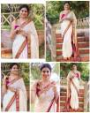 Miss Beelee Polka Print Banarasi Jacquard Saree (White)