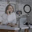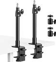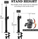 Product Description Tabletop Light Stand Base Ring lights, Cameras, etc. use multifunctional C-clamp stand to lock and support equipment where needed. The use of the C stand can save more valuable space on the desktop. Tabletop Light Stand Base Adjustable clamp, You are able to clamp it on your bedside, Desk, Table, Etc. Feel free to have fun. C-clamp and grommet mount base are included for easy and quick installation. C clamps fits desk thickness up to 4.7" while grommet mounting works well with desk thickness up to 2.75". Choose proper one to install Tabletop Light Stand Base Product Usage (1) The maximum weight that the stand can bear is 10lb, So it can hold your DSLR+lens (~3lb) securely, It can support most photographic lighting equipment, Such as ring lights, Led video lights, Smartphone holders, and digital SLR cameras Tabletop Light Stand Base Product Usage (2) Which can be perfectly used in make up, Interviews, Lighting, Artistic photo photography, Take selfie, Have portrait photography, Live webcast, YouTube/Facebook video shooting Features secure clamp and adjustable arm 1. Stable durable, Made of aluminum alloy material which ensures a long time use without getting rusty, Making it strong for heavy duty work and preventing deformation 2. The height of the bracket can be adjusted from 12 inches to 20 inches by the fixed knob, Adjustable, Saves much more valuable space on your desktop Material: Aluminum alloy Maximum Height: 20 inch Minimum Height: 12 inch Table Clamp Opening Width: 4.5 inch Adjustable