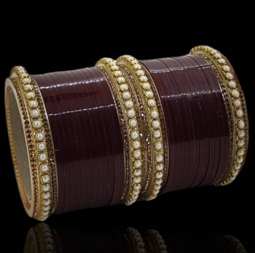 Hand Decorated Designer Glossy Finished With Zircon Gemstone Studded Bangle Set
