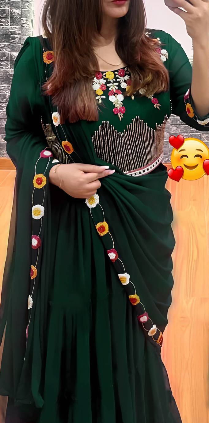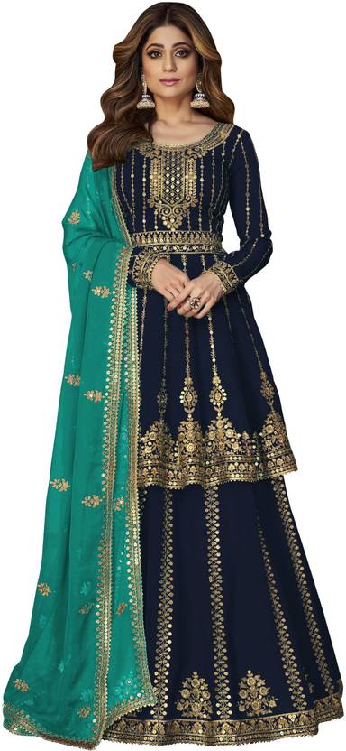 Shoponbit Georgette Embroidered Gown/Anarkali Kurta & Bottom Material