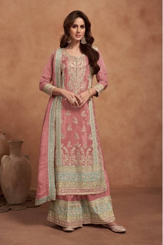 ?? Fabric Details ?? Top :- Heavy PV Vichitra With Embroidery Codding Sequence Work Size :- Max Up To 54" Length :- Max Up To 46" Inner :- Heavy Micro Plazzo :- Heavy PV Vichitra With Embroidery Codding Sequence Work With Full Stitch Size :- Max Up To 44 Length :- Max Up To 42 Dupatta :- Heavy PV Vichitra With Embroidery Sequence Work With 4 Side Embroidery Codding Sequence Lace Wash :- First Time Dry Clean