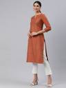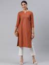 Women Checkered Pure Cotton A-line Kurta (Brown)