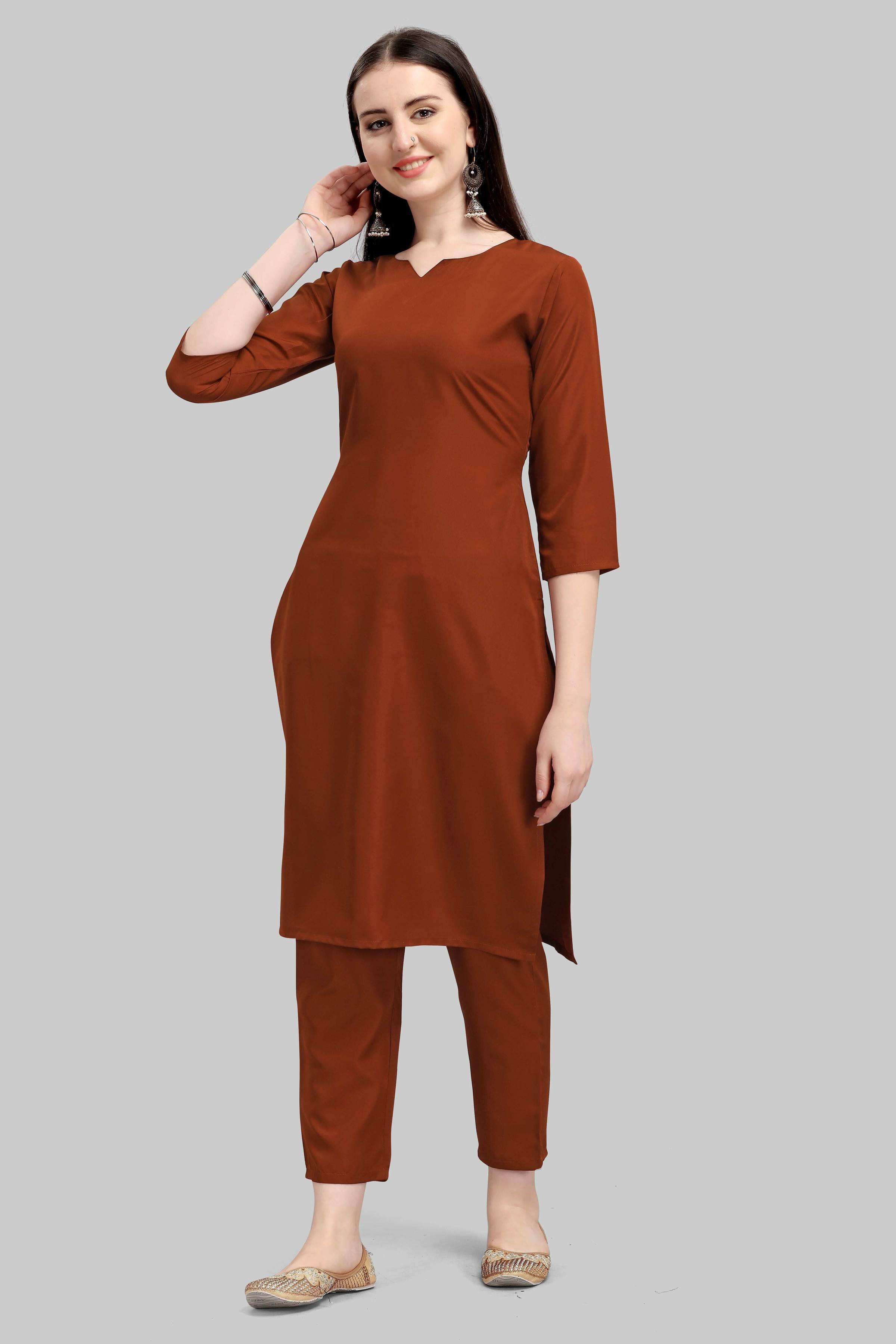ShopOnn Women Checkered A-line Kurta (Brown)