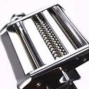 The pasta maker pasta machine made of stainless steel in detail - Made of high-quality chrome-plated, stainless steel. - Allows delicious and very fresh pasta in no time - Fresh pasta such as lasagne, spaghetti, linguine or fettuccine .- Stable and heavy design with a weight of approx. 2.3 kg, as well as fastening clamps.