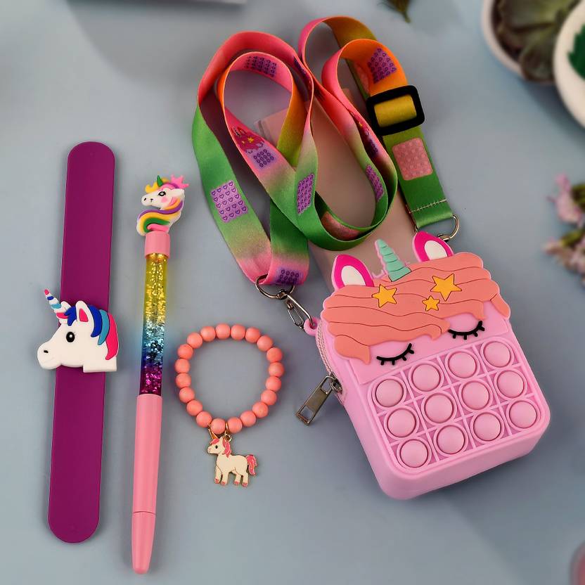 1 Poppit Bag, 1 Pen, 1bracelet, 1Band unicorn Kids Favorite Rakhi Combo Gift Set
