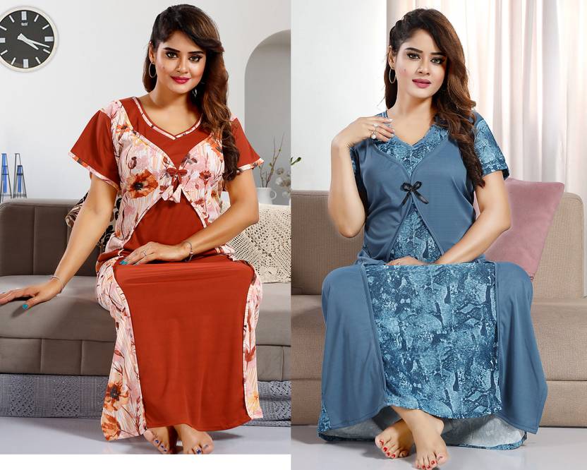 SHOPPING STATION Women Nighty Set (Multicolor)