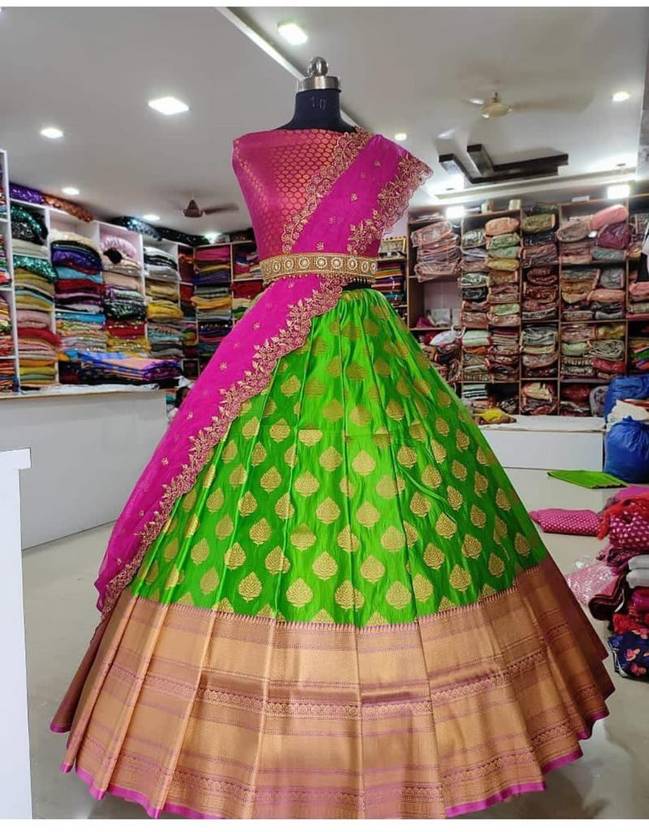 Kanjivaram Silk Zari Lehanga With Blouse Along With Heavy Organza Embroiery jari Work Dupatta_