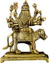 The Maa Chandraghanta God Idol represents the third form of Goddess Durga worshipped during Navratri, a Hindu festival. The idol depicts Maa Chandraghanta with a crescent moon on her forehead, symbolizing bravery and beauty. She is depicted with ten hands holding various weapons and riding a tiger, signifying courage and fearlessness. Devotees worship this idol seeking protection, strength, and inner peace during Navratri and throughout the year.