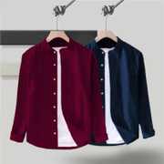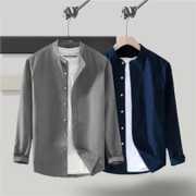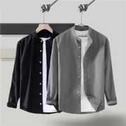 Men Slim Fit Solid Mandarin Collar Casual Shirt