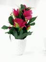 Faux Roses in Red with Green Leaves,, Artificial Flowers for Decor