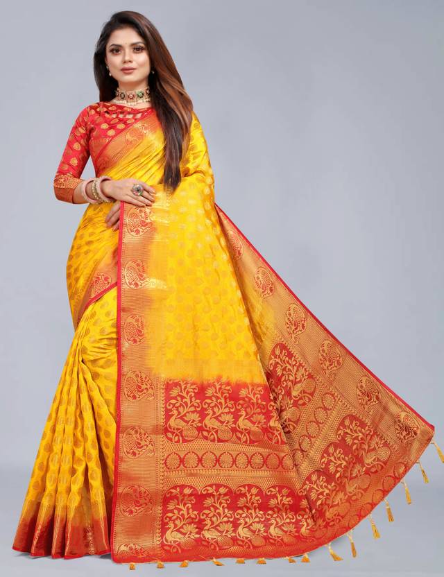 Design is made by 100% jari product has very good looking butta that inspires any person product main feature is pallu and the whole saree made in jacquard machine