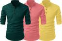 Designed for the urban man, SHOPYCLICK Casual Kurta Shirt is the perfect pick for a casual, yet classy expression. Made of cotton polyester blend, the fabric is soft on the skin to provide all day comfort. It features a curved hemline and offers a relaxing fit that accentuates a neat look. Whatever the occasion, exude confidence in style with this fashionable shirt. Soft and comfortable to wear, the fabric is breathable and easy on the skin- providing a cool effect to keep you relaxed throughout the day. The Kurta shirt is styled with a solid tone, long sleeves and a straight collar. Checkered prints lined along the button placket, collar and cuffs create a distinctive casual appeal. The contrasting print on the inner cuffs allow you to switch from a professional look to a relaxed casual appearance when folded. This casual modern fit shirt has a curved hemline with stitched borders. It not only ensures a durability to the seams but also accentuates the stylish and casual look of the Kurta shirt. You can go casual and keep it outside or go formal and tuck it in. The casual Kurta shirt from SHOPYCLICK is tailored to offer a regular and smart fit. These shirts are stitched in our own factory with care. The fit is very modern with very durable threads used for stitching. All Kurta shirts are cut from machines which bring to you the perfect fit and make sure each shirt is the same. [ PACK OF : 3 KURTA SHIRT ]
