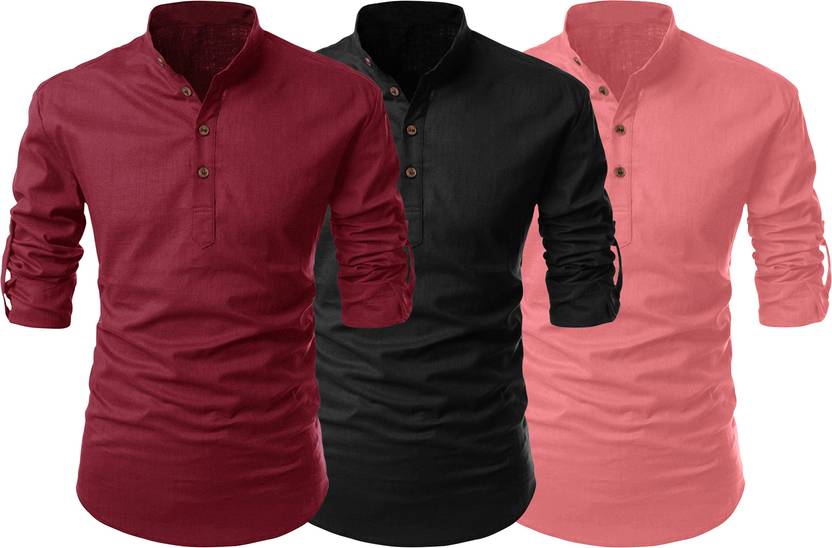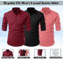 Designed for the urban man, SHOPYCLICK Casual Kurta Shirt is the perfect pick for a casual, yet classy expression. Made of cotton polyester blend, the fabric is soft on the skin to provide all day comfort. It features a curved hemline and offers a relaxing fit that accentuates a neat look. Whatever the occasion, exude confidence in style with this fashionable shirt. Soft and comfortable to wear, the fabric is breathable and easy on the skin- providing a cool effect to keep you relaxed throughout the day. The Kurta shirt is styled with a solid tone, long sleeves and a straight collar. Checkered prints lined along the button placket, collar and cuffs create a distinctive casual appeal. The contrasting print on the inner cuffs allow you to switch from a professional look to a relaxed casual appearance when folded. This casual modern fit shirt has a curved hemline with stitched borders. It not only ensures a durability to the seams but also accentuates the stylish and casual look of the Kurta shirt. You can go casual and keep it outside or go formal and tuck it in. The casual Kurta shirt from SHOPYCLICK is tailored to offer a regular and smart fit. These shirts are stitched in our own factory with care. The fit is very modern with very durable threads used for stitching. All Kurta shirts are cut from machines which bring to you the perfect fit and make sure each shirt is the same. [ PACK OF : 3 KURTA SHIRT ]