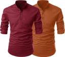 SHOPYCLICK Men Solid Straight Kurta (Maroon, Brown)