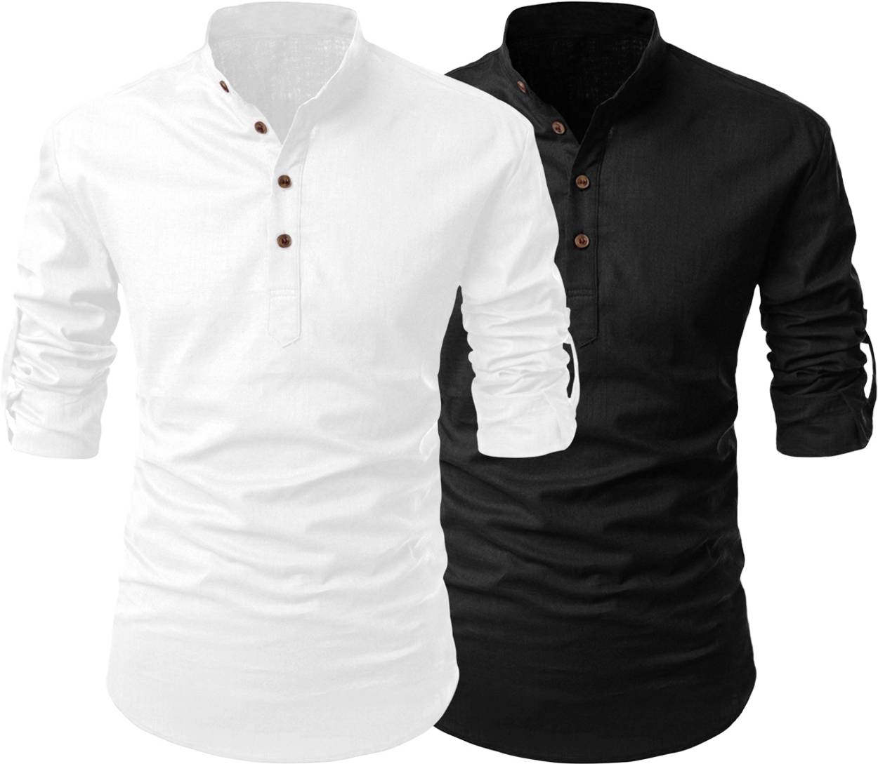 SHOPYCLICK Men Solid Straight Kurta (White, Black)