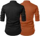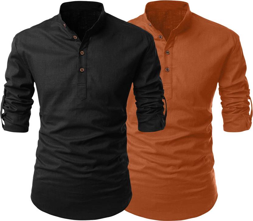 SHOPYCLICK Men Solid Straight Kurta (Black, Brown)