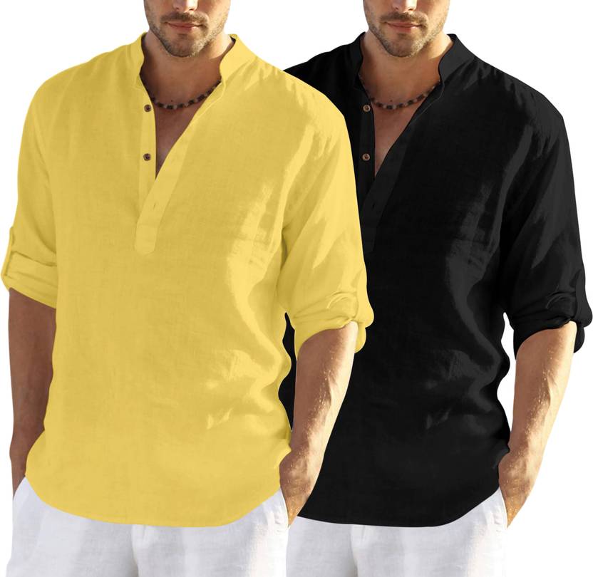 Designed for the urban man, SHOPYCLICK Casual Kurta Shirt is the perfect pick for a casual, yet classy expression. Made of cotton polyester blend, the fabric is soft on the skin to provide all day comfort. It features a curved hemline and offers a relaxing fit that accentuates a neat look. Whatever the occasion, exude confidence in style with this fashionable shirt. Soft and comfortable to wear, the fabric is breathable and easy on the skin- providing a cool effect to keep you relaxed throughout the day. The Kurta shirt is styled with a solid tone, long sleeves and a straight collar. Checkered prints lined along the button placket, collar and cuffs create a distinctive casual appeal. The contrasting print on the inner cuffs allow you to switch from a professional look to a relaxed casual appearance when folded. This casual modern fit shirt has a curved hemline with stitched borders. It not only ensures a durability to the seams but also accentuates the stylish and casual look of the Kurta shirt. You can go casual and keep it outside or go formal and tuck it in. The casual Kurta shirt from SHOPYCLICK is tailored to offer a regular and smart fit. These shirts are stitched in our own factory with care. The fit is very modern with very durable threads used for stitching. All Kurta shirts are cut from machines which bring to you the perfect fit and make sure each shirt is the same. [ PACK OF : 2 KURTA SHIRT ]