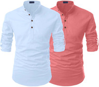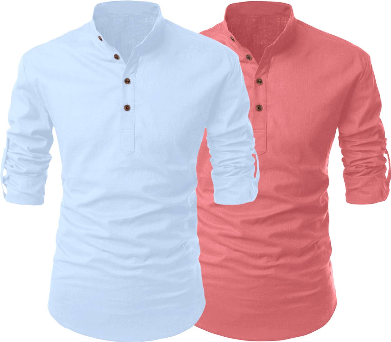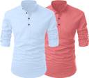 SHOPYCLICK Men Solid Straight Kurta (Light Blue, Pink)