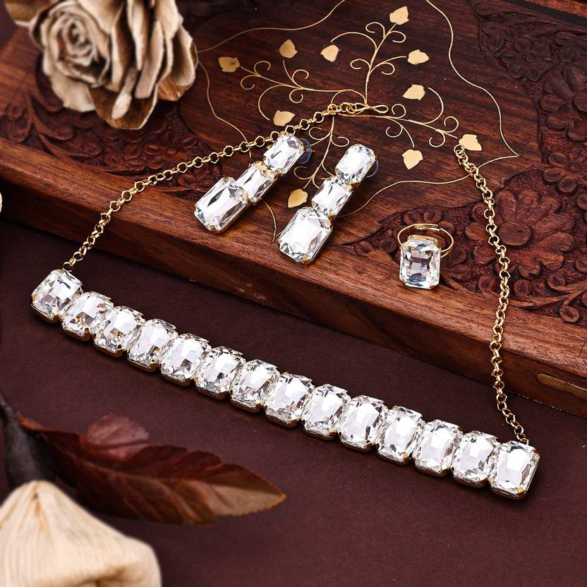Splendid Gold Plated Combo Set for Women is made of Zinc. Women love jewellery; specially traditional jewellery adore a women. They wear it on different occasion. They have special importance on ring ceremony, wedding and festive time. They can also wear it on regular basics. Make your moment memorable with this range. This jewel set features a unique one of a kind traditional embellish with antic finish.